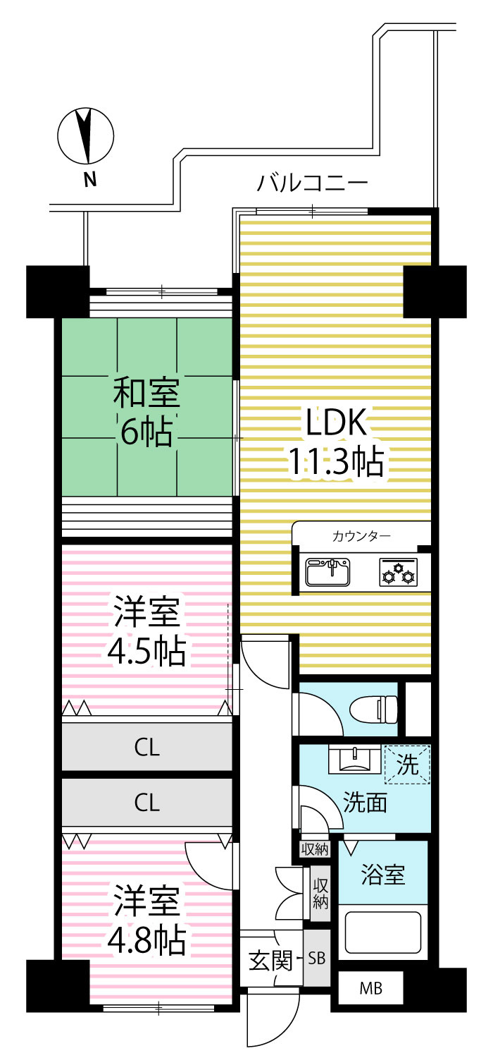 ワイドバルコニーのためたくさんのお洗濯物も干せます♪