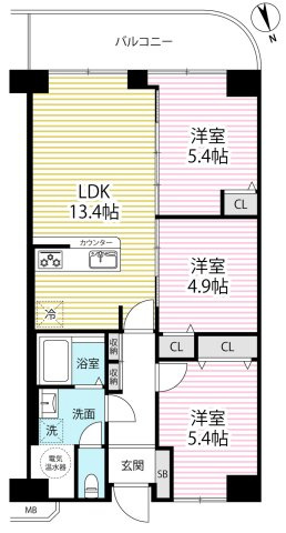 7階建て5階の南向きバルコニーで陽当り良好!