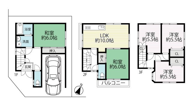 ◆南東向き3階建て5LDK&駐車スペース有り◆全居室収納付き◆山科区勧修寺西栗栖町◆