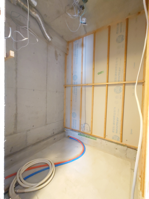 マンションは鉄筋コンクリートで区切られていて、元々あったお風呂を解体するとこのような感じになります。