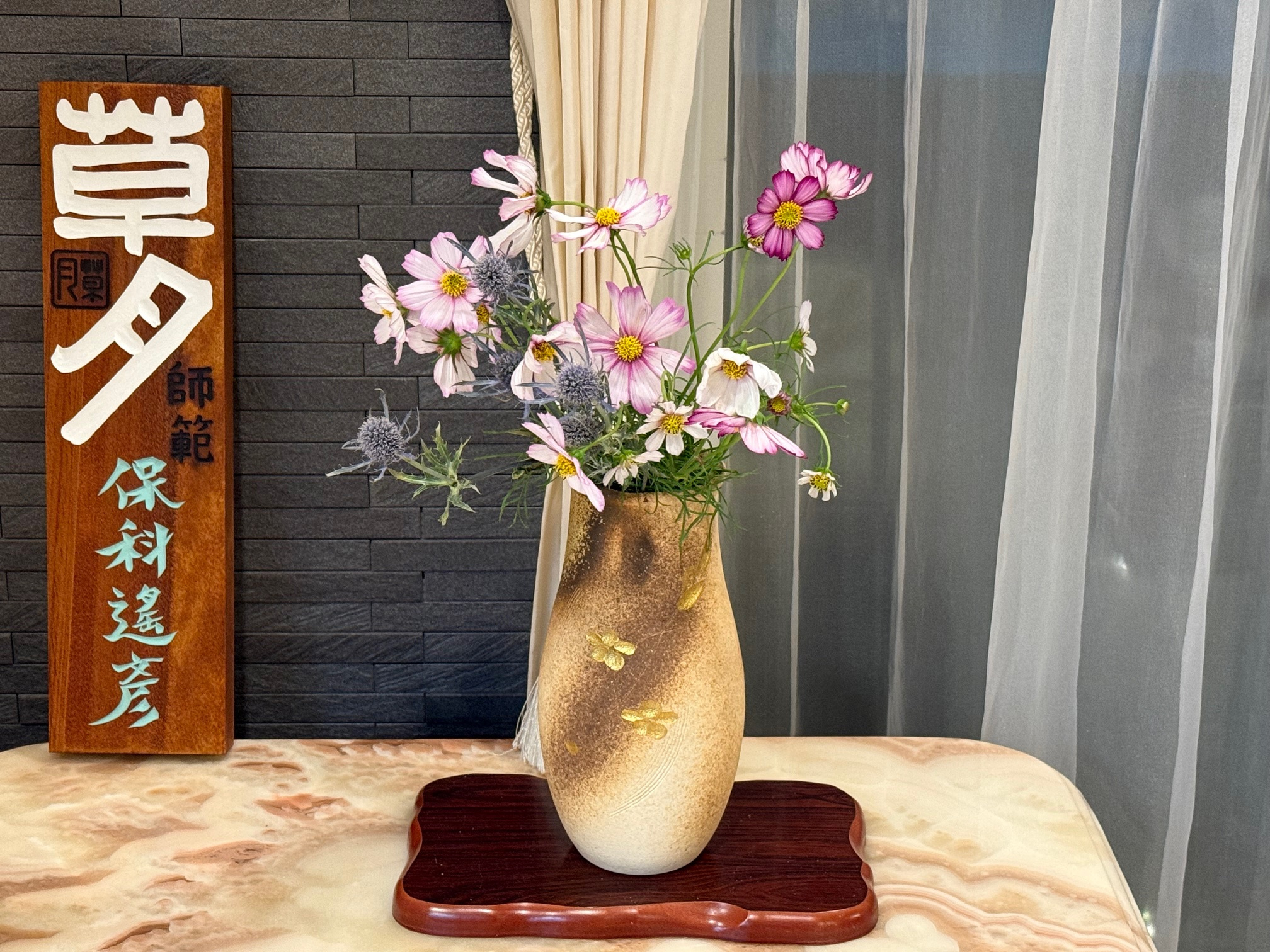 風船唐綿を楽しむ生け花