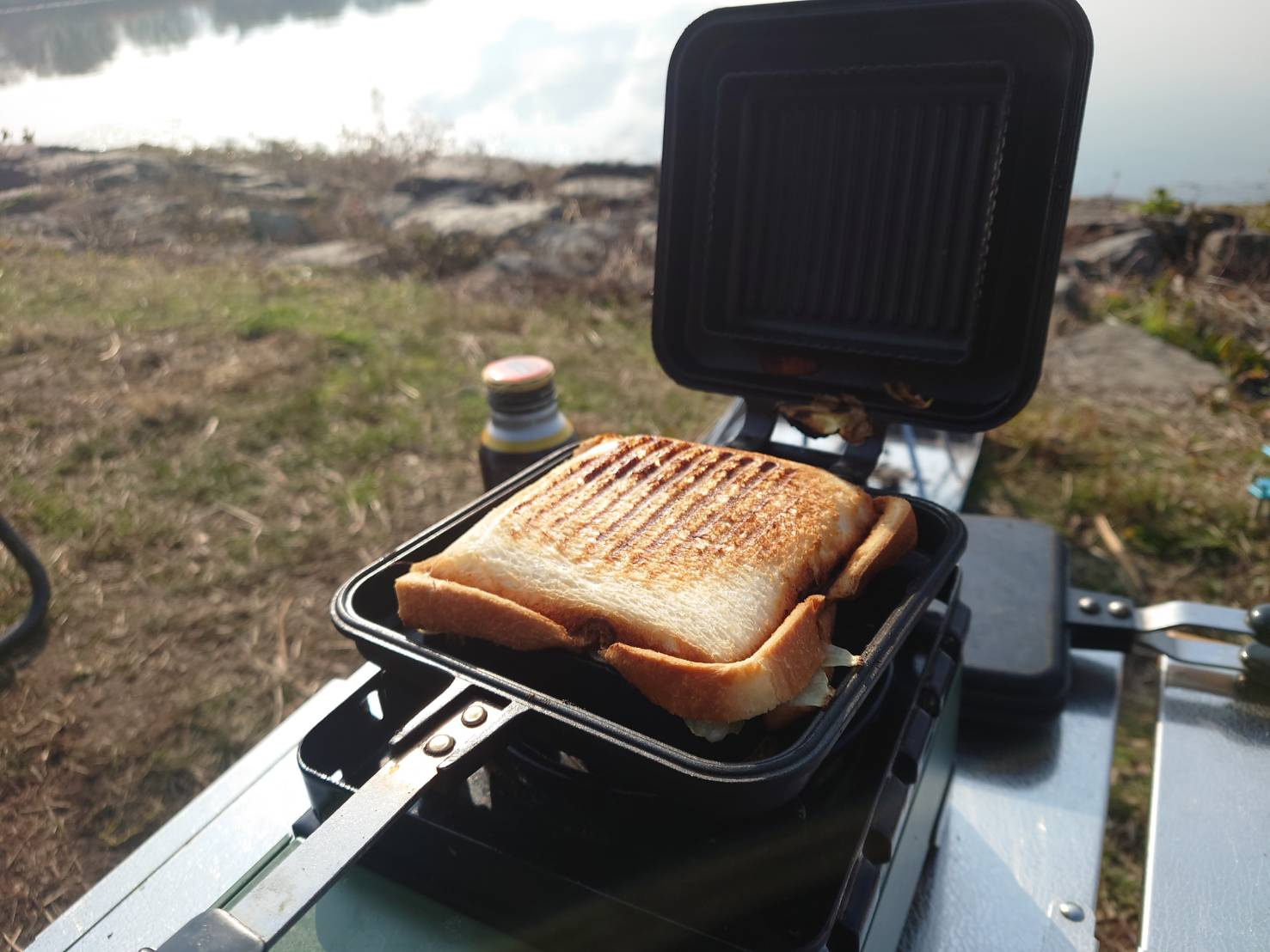 朝はいつも定番のホットサンドでおなかにトドメを━━━(゚∀゚)━━━!!。かなり美味そうに見えますね。