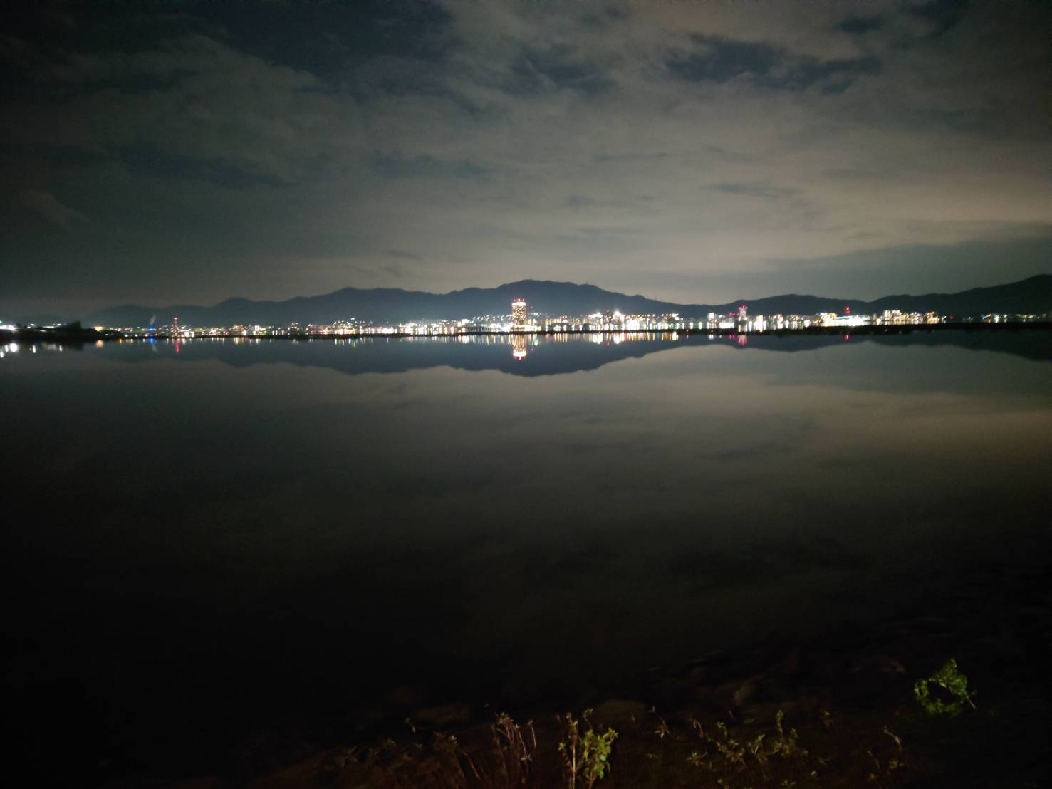 今年は風がほとんどなく、水面は凪でした。夜景が水面に反射してとてもきれい(/ω\)