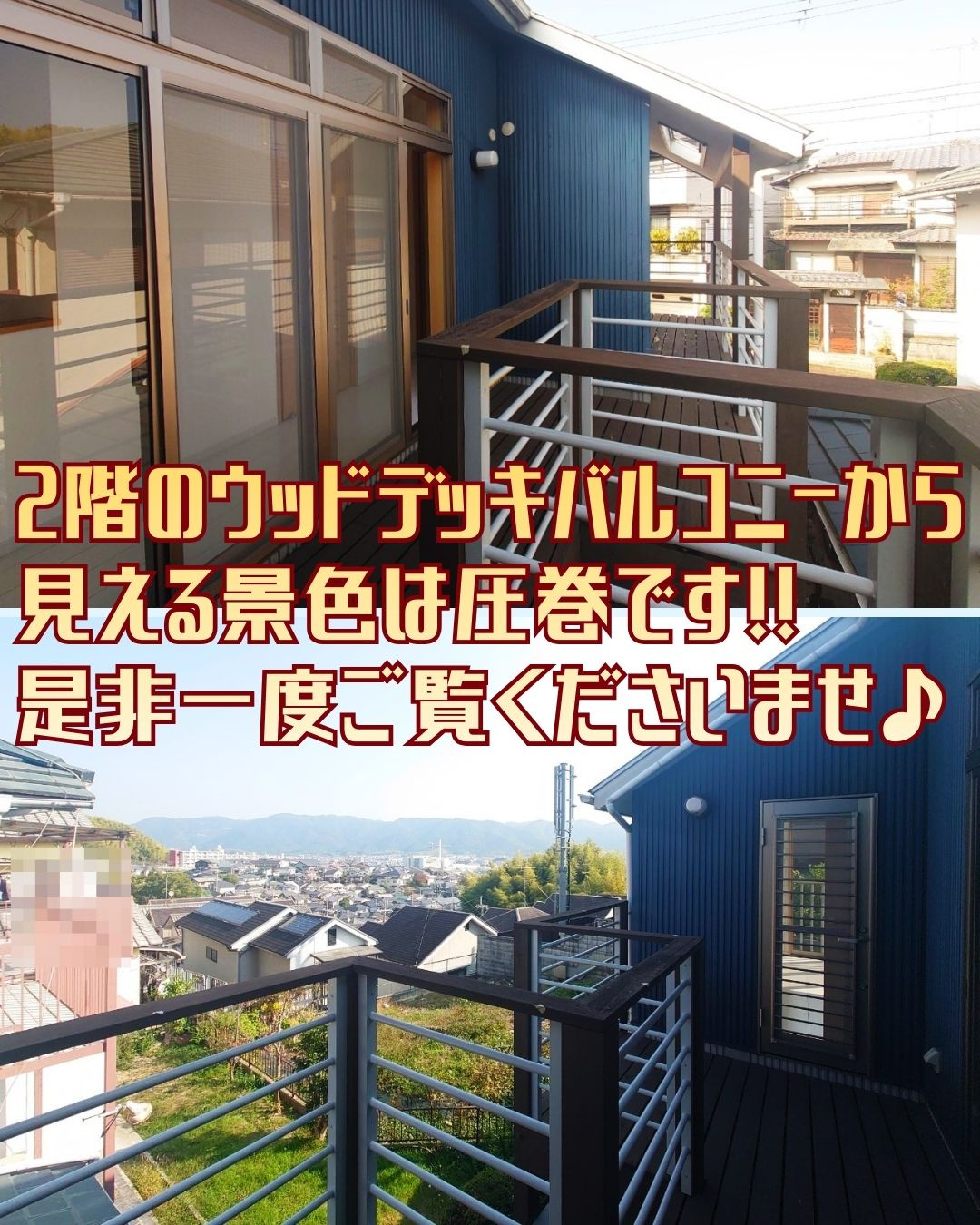 2階のウッドデッキバルコニーから見える