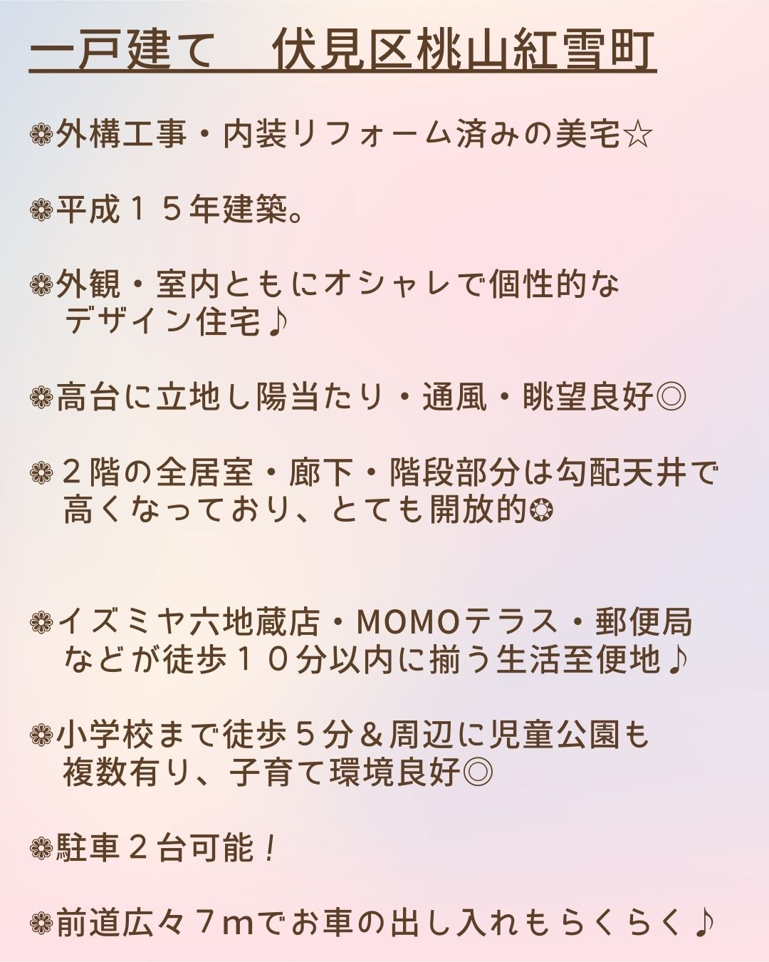 伏見区桃山紅雪町(こうせつちょう)のご紹介です。